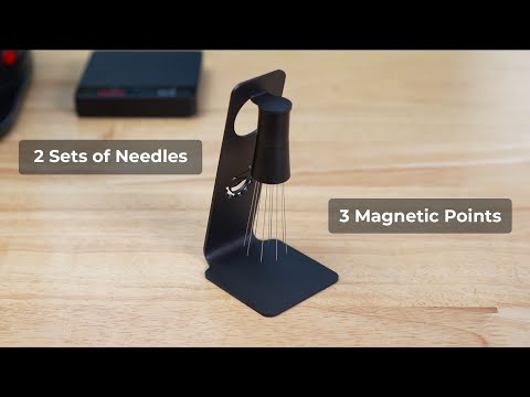 The WDT Tool with Stand is the perfect espresso distribution tool. Featuring the Weiss Distribution Technique, this tool helps create a superior and consistent espresso extraction. The preconfigured 9 pins spread out strategically for efficient stirring. The included pins are made of food safe stainless steel and are 0.4mm in diameter. This gives the perfect combination of rigidity and flex allowing you to break up clumps for a smooth extraction. We also give you additional set of 0.25mm needles if you want to try the soft flex needles. Our WDT has 3 strong magnetic points that you can use to attach to any steel espresso machine.